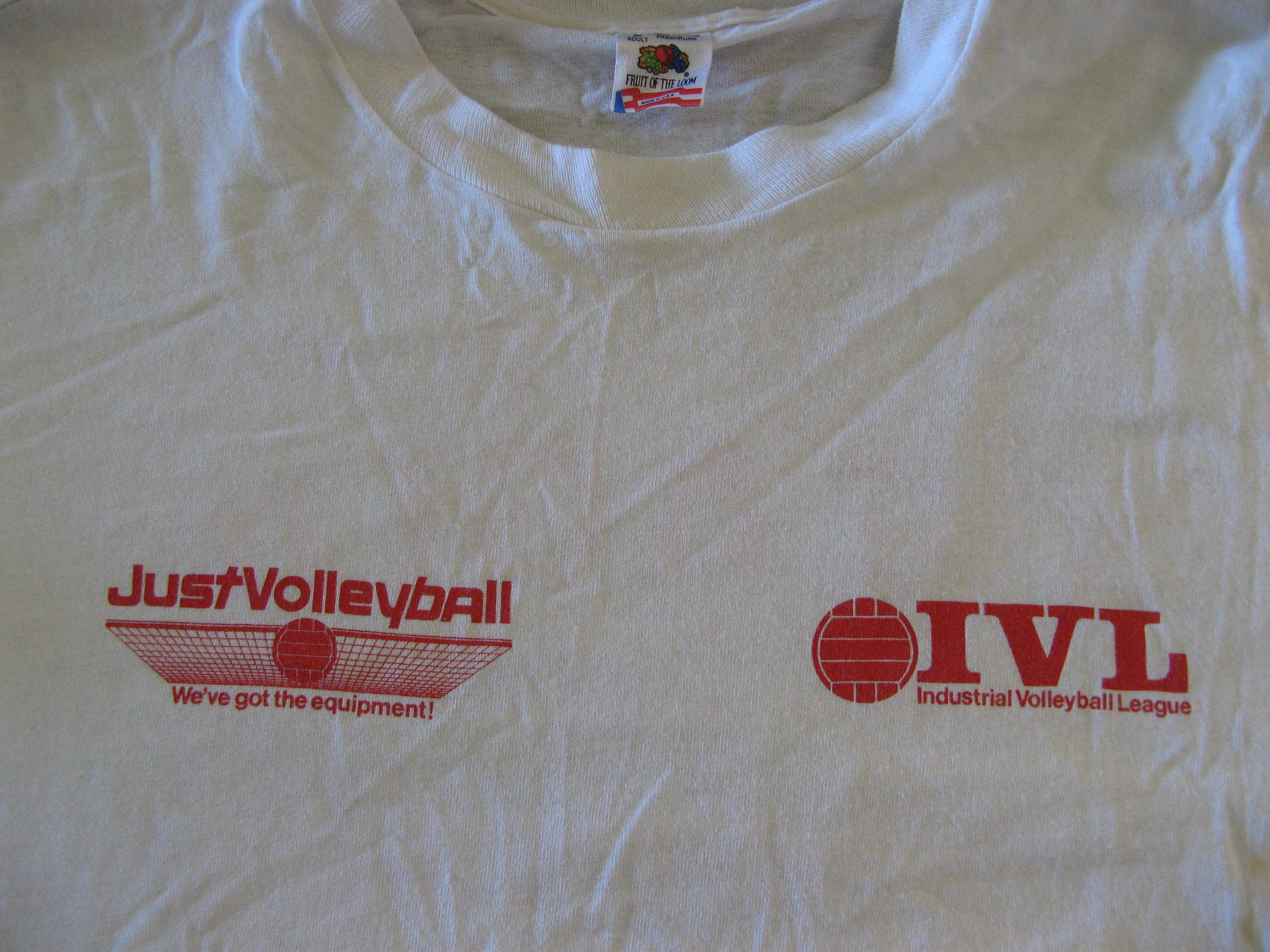 What was on the front of some of the shirts in those days: The Just Volleyball logo with the original slogan along with the IVL logo at that time.