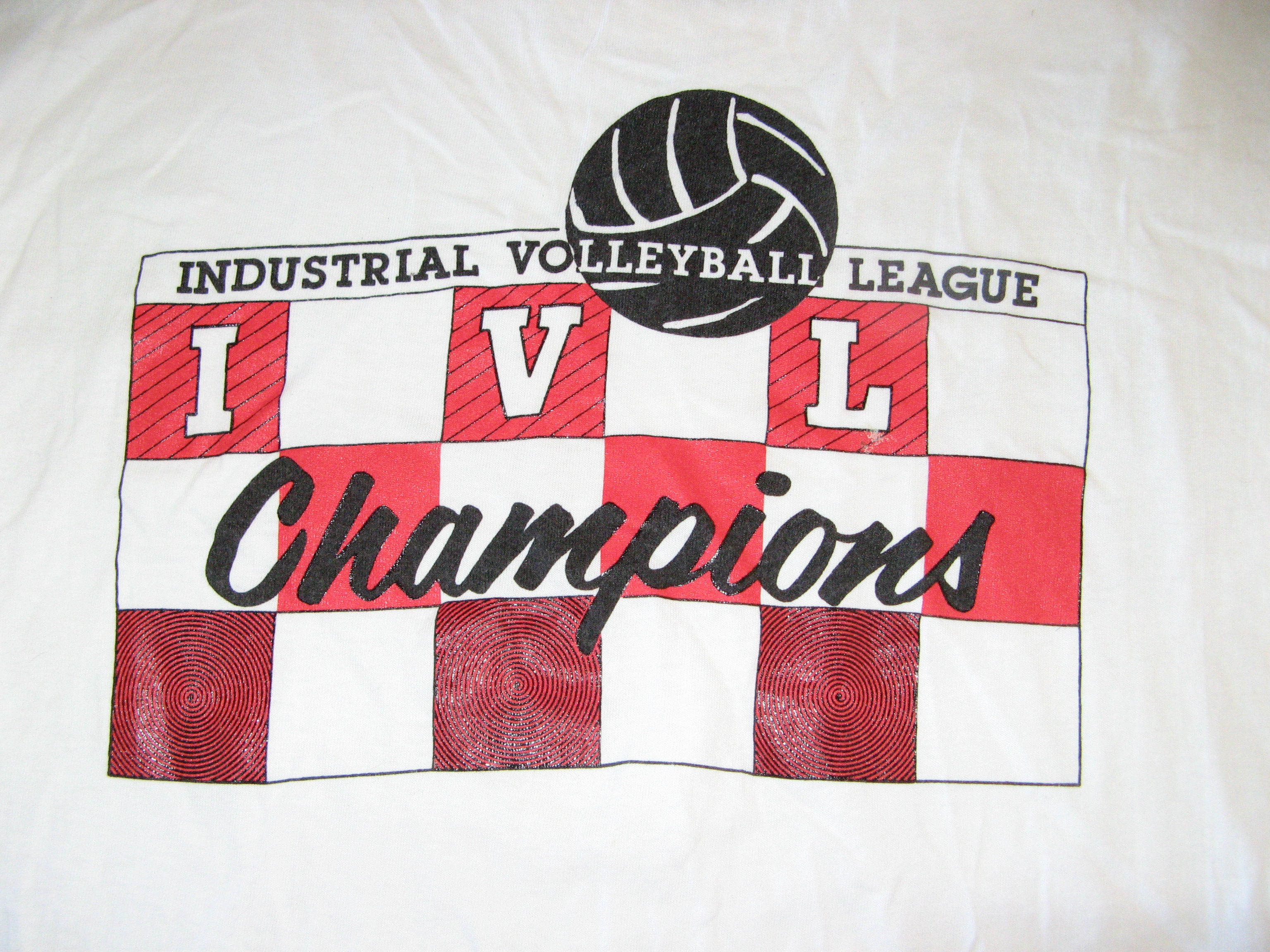 The original prize shirts for the IVL playoff winners each season during the years 1979-2005 were provided by David Hirose of Just Volleyball. David did most of the design concept and sketches, Glen Marchant the graphic design artwork and Chris Snowbarger the t-shirt screen printing. These guys did some nice work.