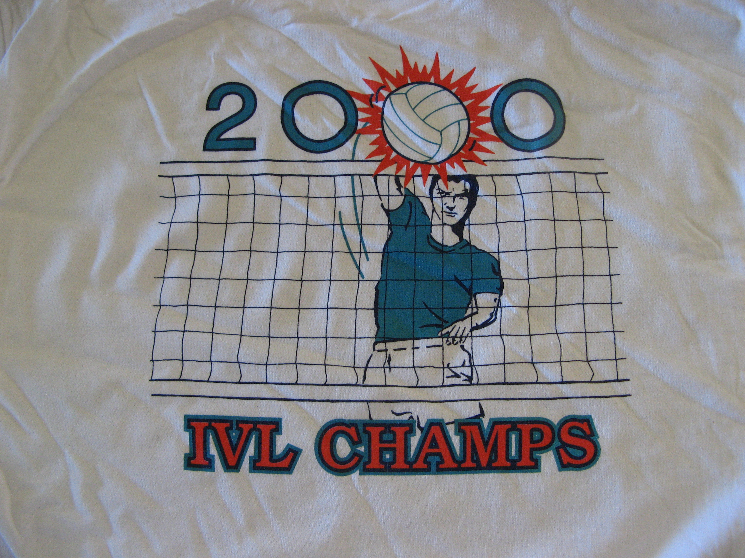 The original prize shirts for the IVL playoff winners each season during the years 1979-2005 were provided by David Hirose of Just Volleyball. David did most of the design concept and sketches, Glen Marchant the graphic design artwork and Chris Snowbarger the t-shirt screen printing. These guys did some nice work.