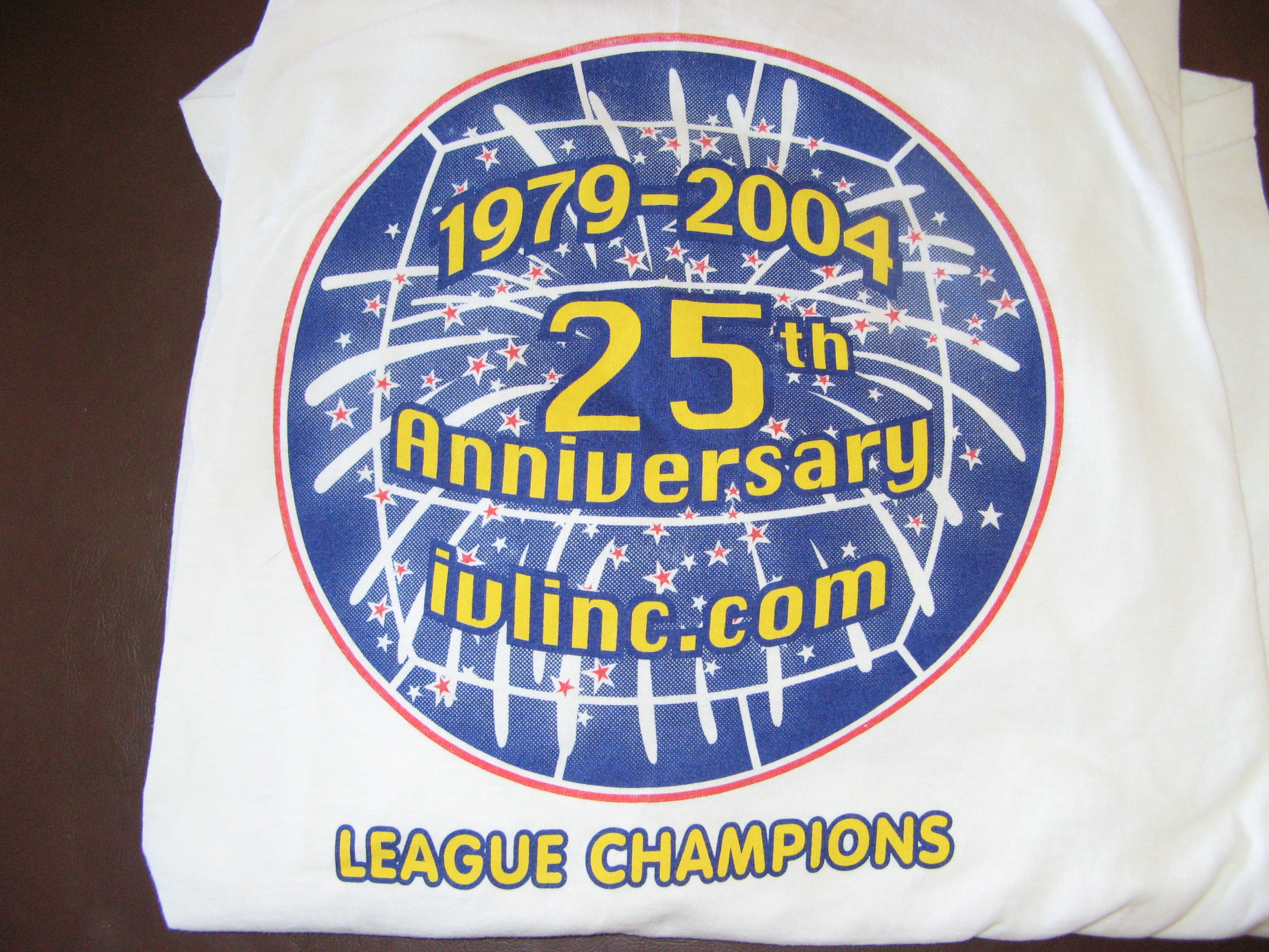 The original prize shirts for the IVL playoff winners each season during the years 1979-2005 were provided by David Hirose of Just Volleyball. David did most of the design concept and sketches, Glen Marchant the graphic design artwork and Chris Snowbarger the t-shirt screen printing. These guys did some nice work.