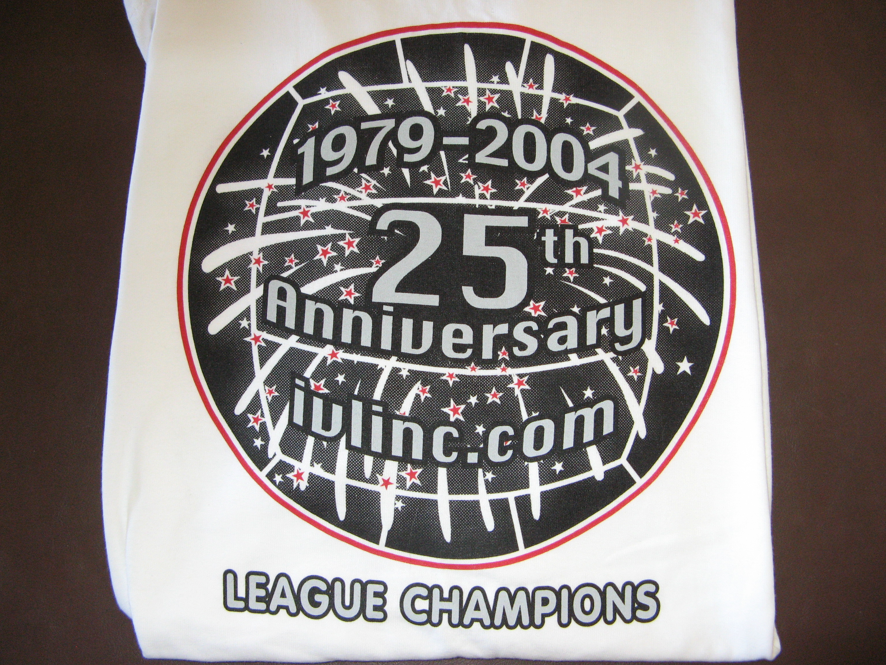 The original prize shirts for the IVL playoff winners each season during the years 1979-2005 were provided by David Hirose of Just Volleyball. David did most of the design concept and sketches, Glen Marchant the graphic design artwork and Chris Snowbarger the t-shirt screen printing. These guys did some nice work.