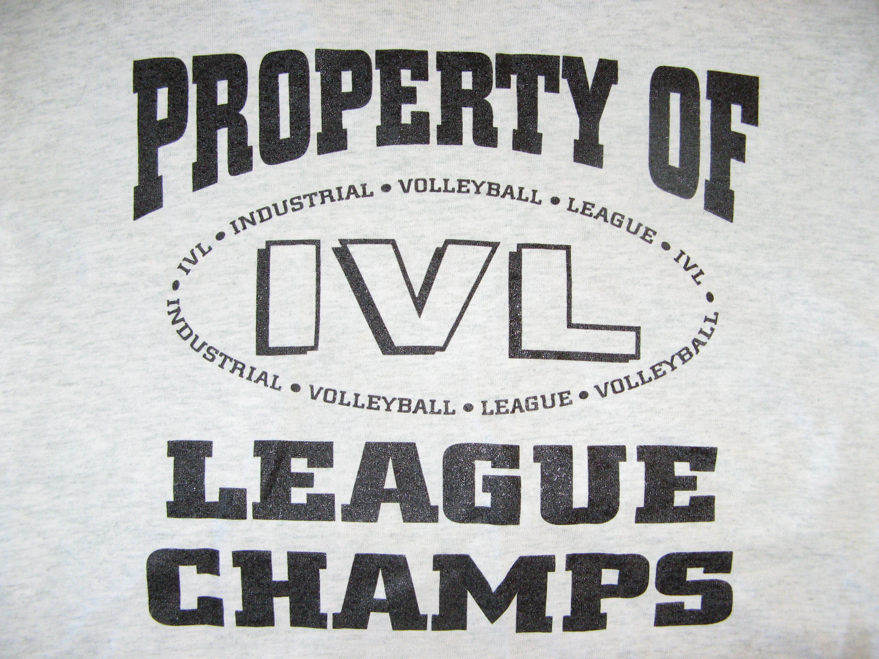 The original prize shirts for the IVL playoff winners each season during the years 1979-2005 were provided by David Hirose of Just Volleyball. David did most of the design concept and sketches, Glen Marchant the graphic design artwork and Chris Snowbarger the t-shirt screen printing. These guys did some nice work.