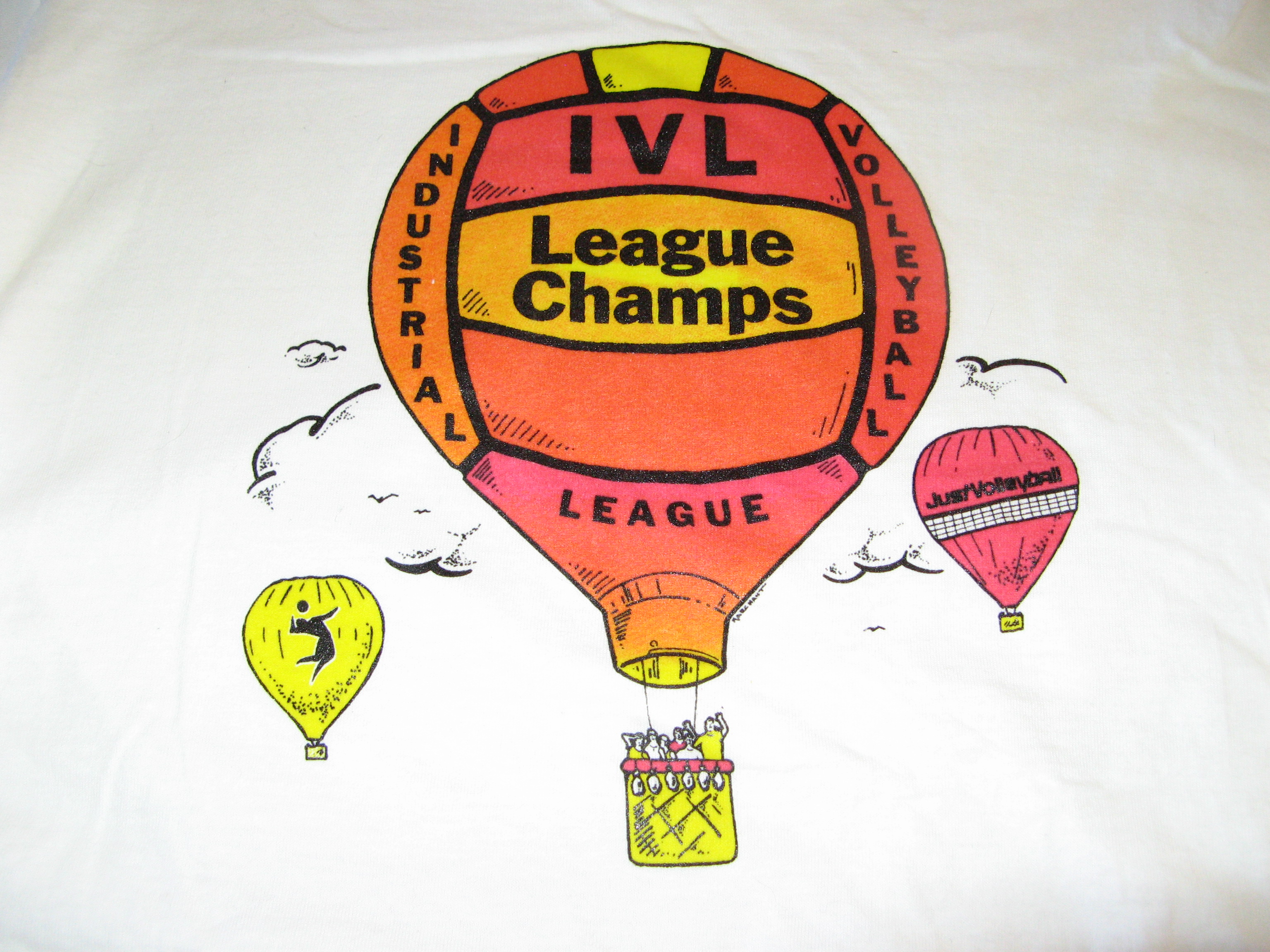 The original prize shirts for the IVL playoff winners each season during the years 1979-2005 were provided by David Hirose of Just Volleyball. David did most of the design concept and sketches, Glen Marchant the graphic design artwork and Chris Snowbarger the t-shirt screen printing. These guys did some nice work.