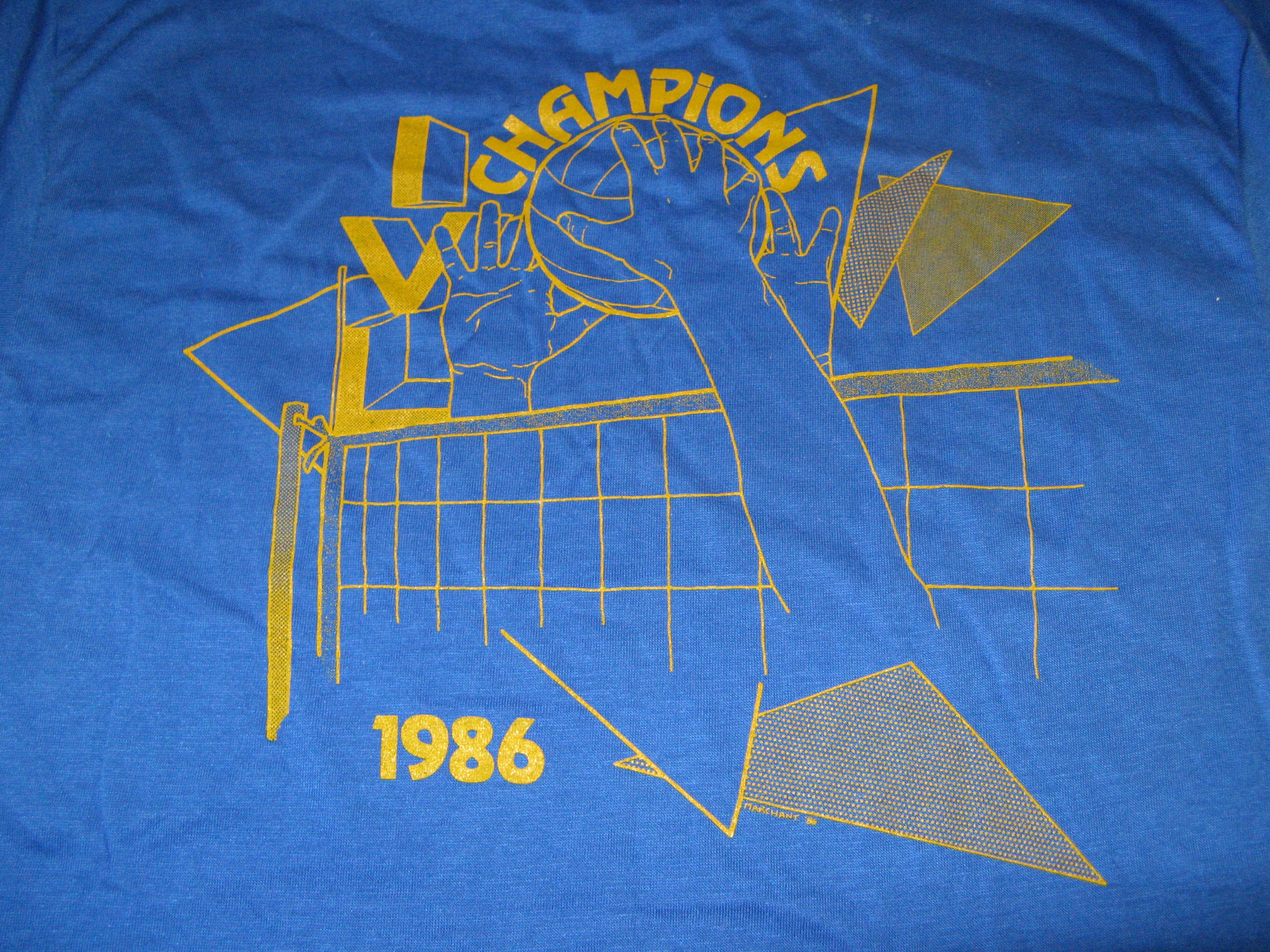 The original prize shirts for the IVL playoff winners each season during the years 1979-2005 were provided by David Hirose of Just Volleyball. David did most of the design concept and sketches, Glen Marchant the graphic design artwork and Chris Snowbarger the t-shirt screen printing. These guys did some nice work.