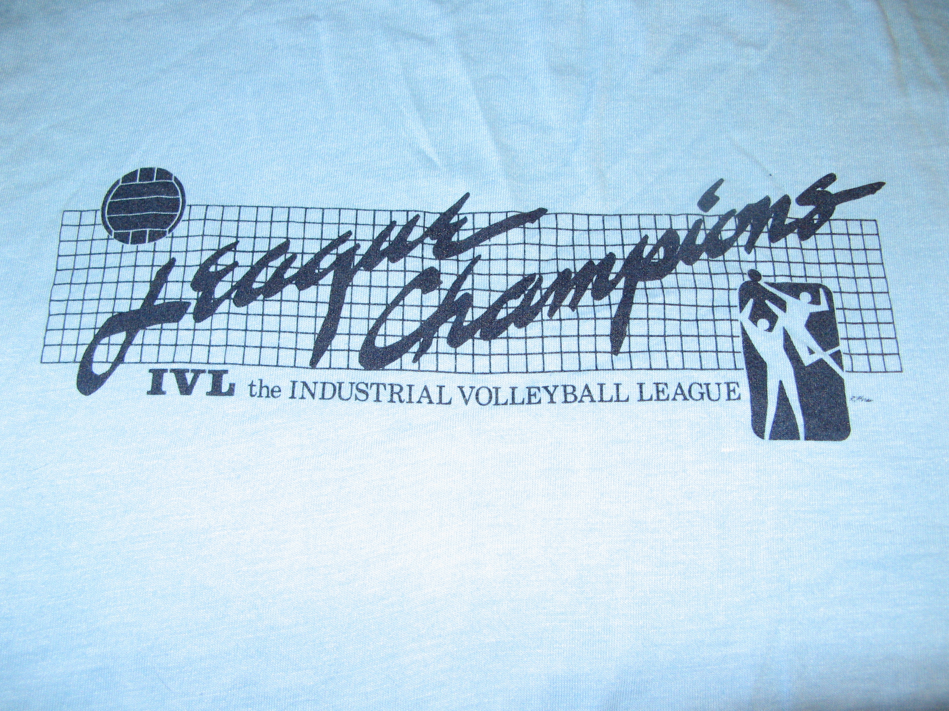 The original prize shirts for the IVL playoff winners each season during the years 1979-2005 were provided by David Hirose of Just Volleyball. David did most of the design concept and sketches, Glen Marchant the graphic design artwork and Chris Snowbarger the t-shirt screen printing. These guys did some nice work.